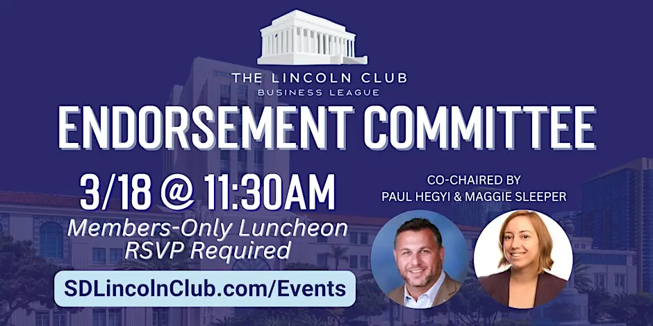 This event is open to current Lincoln Club members and their guests. Questions about membership? Please contact Dena Cruden, at Dena@SDLincolnClub.com.