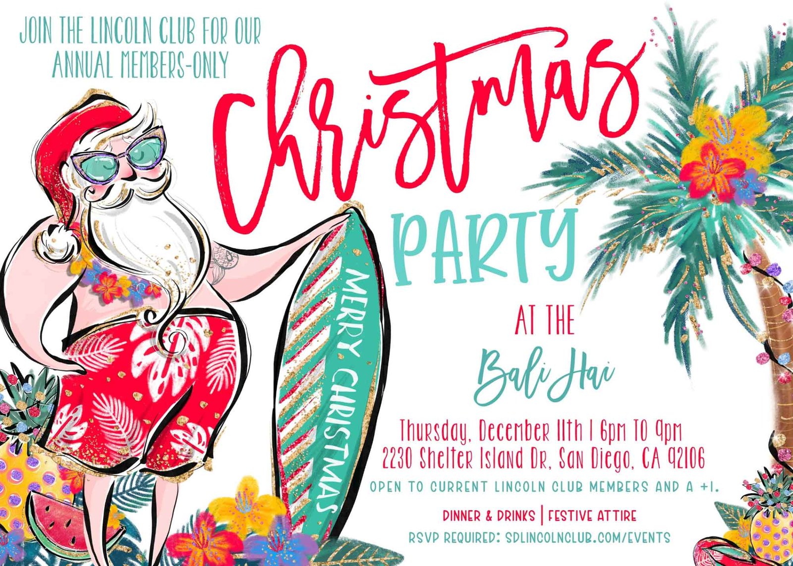 Members and a guest are invited to join us for the Annual Lincoln Club Christmas Party at the Bali Hai. Hosted dinner and drinks. Attire: Festive. This special event is free for Lincoln Club members and one additional guest, so make sure to RSVP! Please contact us with questions at info@SDLincolnClub.com.